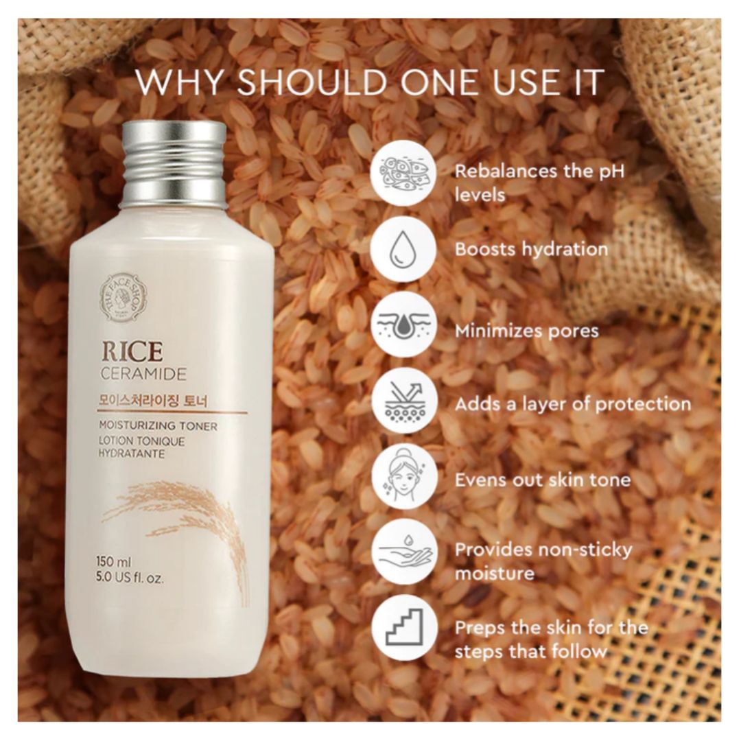 Get your hands on this moisturizing toner crafted with rice bran oil, glycerine, and vegetable ceramide to rebalance the pH levels, shrink pores and brighten the skin. It contains natural ingredients that add a little moisture and preps it for further layering of skin care products.